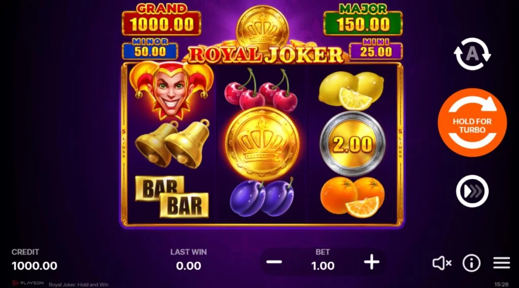Absolument, Royal Joker Hold and Win intègre des récompenses exclusives pour dynamiser les sessions. Le joker se comporte comme un symbole universel dans la partie de base, facilitant la création de lignes payantes. Par ailleurs, le titre comporte un mode additionnel « Hold and Win », qui délivre des spins gratuits et des possibilités de gains majeurs.